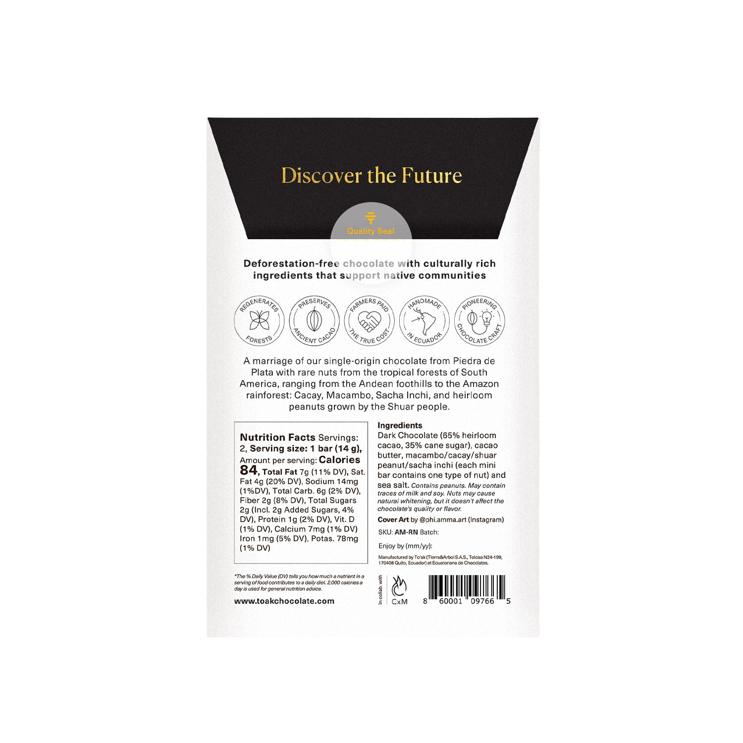 Our single-origin chocolate meets rare nuts from South America’s tropical forests with a blend of Cacay, Macambo, Sacha Inchi, and heirloom peanuts grown by the Shuar. This bar of exclusive To’ak chocolate is perfect for sampling this rare delight. To’ak is rightly known as the most expensive chocolate in the world with good reason.